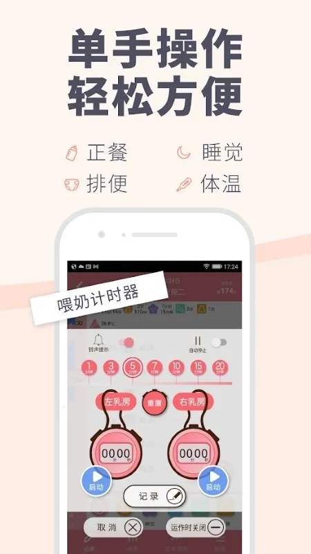 助力科学育儿,有喂养计时智能提示,自动记录哺乳时长与轮换顺序,可自定义提醒培养科学喂养规律。