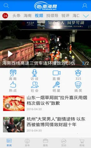 南海网官方网站首页能满足你获取海南各类信息的需求。南海网手机版是款超实用的新闻服务软件。它新闻实时更新,打开就能轻松阅读。热门功能众多,像旅游信息分享、新闻视频等,可按需选择。其优势明显,所有新闻信息全展示,能快速满足阅读需求;在线搜索方便,能迅速找到所需;问政窗口可提供政务服务,解决居民政务问题;还有视听服务,让你清晰了解视听新闻;能进入新闻直播,实时掌握最新资讯;还可实时互动交流,了解更多生活信息。生活服务也全展示,能帮你快速找到工作,发布精彩资讯。总之,南海网手机版功能强大又便捷,快来下载体验吧!