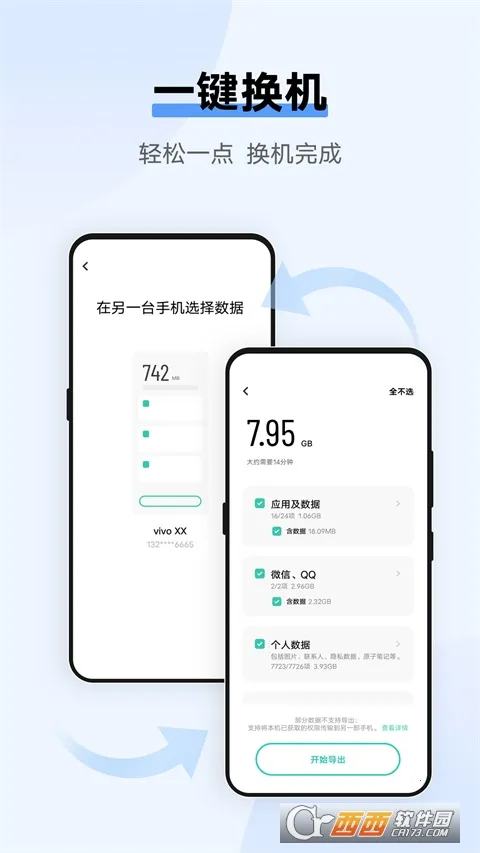 想知道vivo互传功能在哪?它可是vivo手机超实用的文件互传APP。有了它,两台手机近距离文件互传超轻松,速度超快还不耗流量。不管是安卓和安卓,还是安卓和iPhone,甚至手机和电脑,各种形式连接传输都支持。它能解决数据迁移难题,一键换机可把旧手机数据完美拷贝到新手机,联系人、照片、聊天记录、应用都能传。还能网页传手机,电脑无线连接随心传输文件。支持资料备份,不用担心数据丢失。朋友间分享文件也方便,零流量极速分享音乐、电影、应用、图片等。而且没有网络或想省流量时能用,面对面连接后不耗网络就能互发文件。使用简单,界面简洁,按照提示操作就能轻松实现各种功能,赶紧来体验吧!