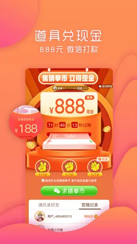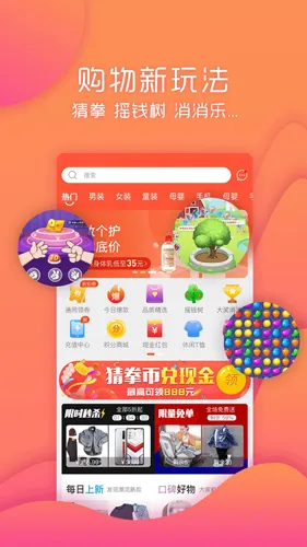 其玩法多样,每日能领现金红包购物抵现或提现,邀请好友可得猜拳币兑现金,还有石头剪刀布赢免单券、玩消消乐得奖励、摇钱树有回报等。它是新型电商平台,社交游戏玩法多,购物优惠还能带来欢乐,平台发放限量免单优惠券,邀请好友可获免单名额。货源性价比高,官方精选来自广州江浙,出厂价批发价。官方保障品质,假货全额赔,不满意可退换。功能完善,能满足各项购物需求。