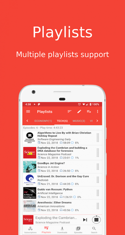具备多种贴心功能,如音频和视频播客支持、全自动下载、离线播放节省数据、多播放列表支持等,使用体验佳。