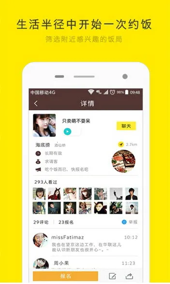 想和朋友亲人网上约饭,告别放鸽子吗?那就来试试约饭app吧!它是北京道同道科技出品的手机约饭软件。通过它,能让你轻松和朋友亲人达成吃饭契约,饭局更稳定。