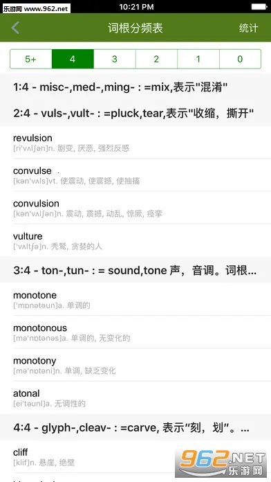想轻松查询词根词缀记忆字典吗?这款软件超棒!它是单词学习专用软件,收录单词达专八、考研级别,完全不用担心词汇量问题,且所有功能学习资料免费使用。它总结了千余条词根和近万条含词根的单词,有正向和反向索引,方便举一反三查询。标记了大学英语四六极、专四专八、考研大纲词汇,以及托福雅思GRE常考词汇。功能超丰富,有真人单词读音,记忆模式只提供单词,再次点击显示含义,方便记忆。独创单词逆序检索,能查找指定字符结尾的单词,还能查看检索词汇的前后词条。单词查询和阅读页面可调节亮度,夜间使用不伤眼。此外,还集成多本文学巨著帮您熟悉语言环境。有了它,查询词根词缀记忆超方便,学习单词更轻松!