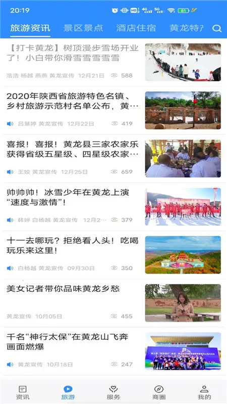 嘿,朋友们!今天给大家介绍一款超棒的软件——爱黄龙 app。它可是由陕西广电通付电子商务有限公司精心研发制作的新闻政务服务综合平台哦!这平台能为咱们解决不少事儿呢。它整合了县域内网站、自媒体和政务资源,有新闻、直播、电视、广播等多种栏目。不管是想第一时间了解黄龙县域动态,还是参与实时互动,或者享受便民服务,它都能满足。像资讯界面有海量最新资讯头条和视频;旅游界面提供旅游相关服务;服务界面有反馈功能和很多便民服务。而且它还有很多特色,比如能自己管理和添加新闻分类,快速参与热门活动,一键收藏喜欢的内容,查看当地天气。总之,爱黄龙 app 就是咱们生活的好帮手,让信息获取与生活管理都变得超便捷,快来下载体验吧!