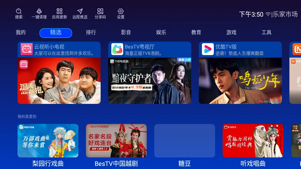 乐家市场2026官方最新版本是专为智能电视打造的应用市场,整合影音、直播、教育、游戏应用。界面适配电视操作,有安全检测、远程推送等功能,资源丰富免费,更新及时,满足多样需求,操作便捷。