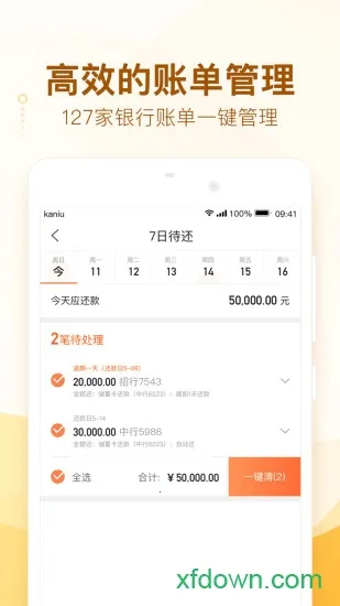 卡牛信用卡管家是一款合法且功能强大的手机信用卡app。它能在线申请办理多种银行信用卡业务,还能管理消费记录、统计账单。一键还款超方便,支持绑定储蓄卡,0手续费,还有还款金优惠券。能实时监控花销,绑定网银就能查看信用卡实时账单。跨平台负债管理也很棒,淘宝花呗、京东白条等负债账单一键导入。有智能提醒功能,账单日、还款日、还款金额都能智能提醒,避免逾期被罚息。它经过CFCC安全认证,数据多层加密,安全可靠。新用户注册送还款金,127家银行账单一键导入。有贷款超市,通过率高放款快,额度0到20万。代还超市能定制化推荐,还有智能推荐优先还款账单,代还还款金更省钱。总之,能帮你轻松管理信用卡及各类负债,是信用卡管理的好帮手。