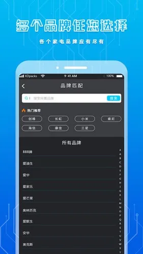 品牌选择丰富,支持7000家电品牌、250000遥控器,自带80000离线遥控器码库,即便没网络也能正常使用。