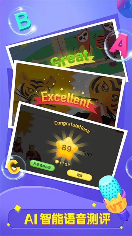 丰富学习资源:整合小学教材与大量原版分级绘本,还有海量音视频资源如歌曲、动画和电影,支持听说读写一体化训练,助力孩子全面学习英语。
