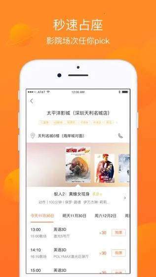 4. 便捷购票:流程简便,几步就能完成电影票购买。