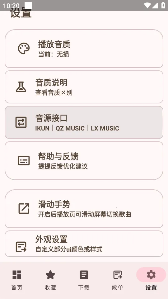其音质体验出色,支持无损音频解析,能还原音乐本真质感,不同音质标准可供选择,从普通的128kbps到高品320kbps,还有无损的FLAC格式以及超越无损的Hires格式,满足多样需求。播放界面个性十足,采用Material配色粒子背景动画,带来独特视觉享受。而且支持多平台搜索,可便捷切换,能在四平台进行音乐操作,方便实用。喜欢听歌的用户不妨试试这款软件,能为你带来不错的听歌体验。