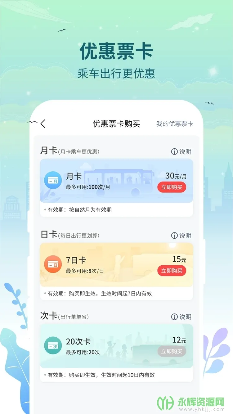 3. 一键完成乘车账户通卡和手机话费充值,操作简单轻松。