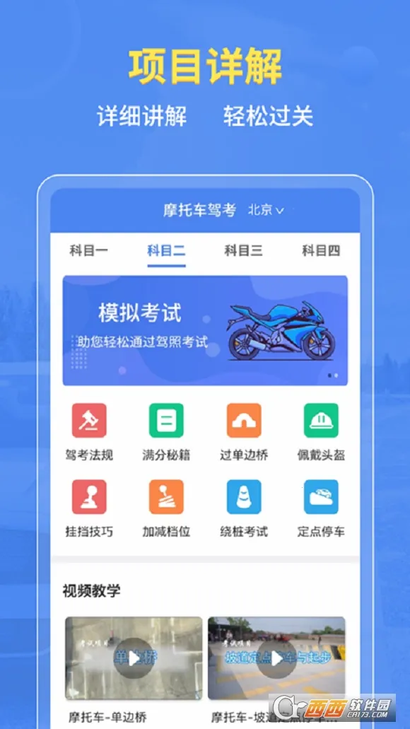 内容全面系统,涵盖交通法规、安全驾驶技巧、乘降车姿势等多方面摩托车知识,助用户打下坚实驾考基础。
