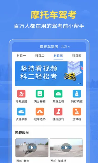 摩托车驾考百科专为摩托爱好者及考驾照人士设计,提供全面摩托知识。功能分区清晰,可针对性练习。有离线做题、题型多变等特色,含错题收藏、路考视频指导,助用户轻松掌握驾驶技能,通过驾照考试。