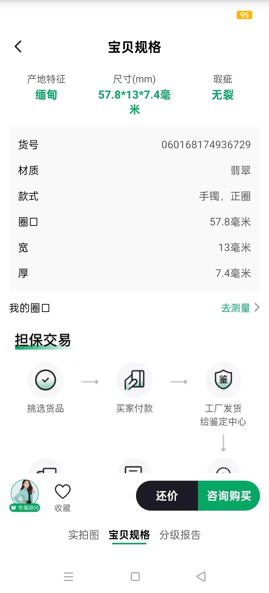 正品保障:每件货品经GTC天然鉴定,承诺货品100%保真。从源头严格筛选商家,商品实物实景拍摄,推荐商家缴纳交易保证金,支持鉴定担保交易和三天无理由退货。买家下单选鉴定宝服务,经对庄珠宝鉴定师上手检测,再送国家权威鉴定检测中心鉴定,出具证书,全程由保险公司承保,买家收货后三天内可无理由退换货,运费保险费由对庄承担。