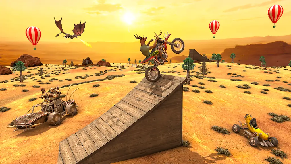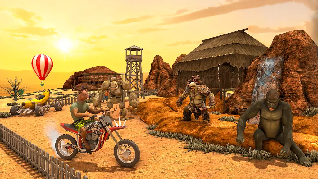 玩家要驾驶摩托车,掌握翘头技巧突破重重障碍,躲避多种怪兽追击,成功救出被囚禁的山羊,考验反应与驾驶技巧。