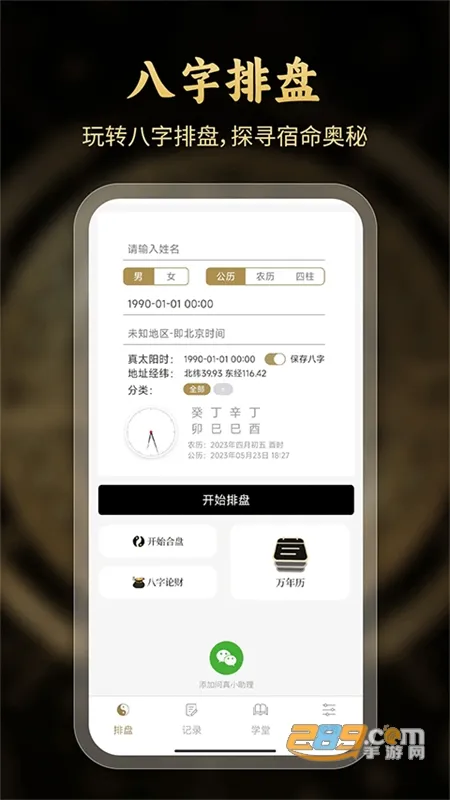问真八字排盘2025官方最新版本专为八字命理师和爱好者打造。由周易命理师指导,输入个人信息就能测算命理。它数据云存储,更换设备数据不丢,支持多历排盘和时间校对。有智能古籍推荐,帮你读懂八字,还有断事笔记方便记录反馈信息。排盘界面分三个,数据丰富。设有八字学堂传播知识,留言界面方便沟通。能快速测算运势,提供专业命理信息,从多方面详细分析,带你深入探索易学奥秘 。
