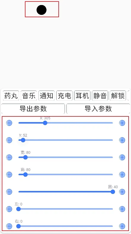 2、然后再调节圆点的位置,使圆点与手机挖孔重合。
