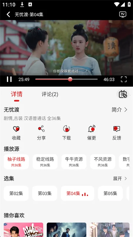 每个节目提供多个片源,可根据用户所在地的播放流畅度自由选择,让观看更顺畅。