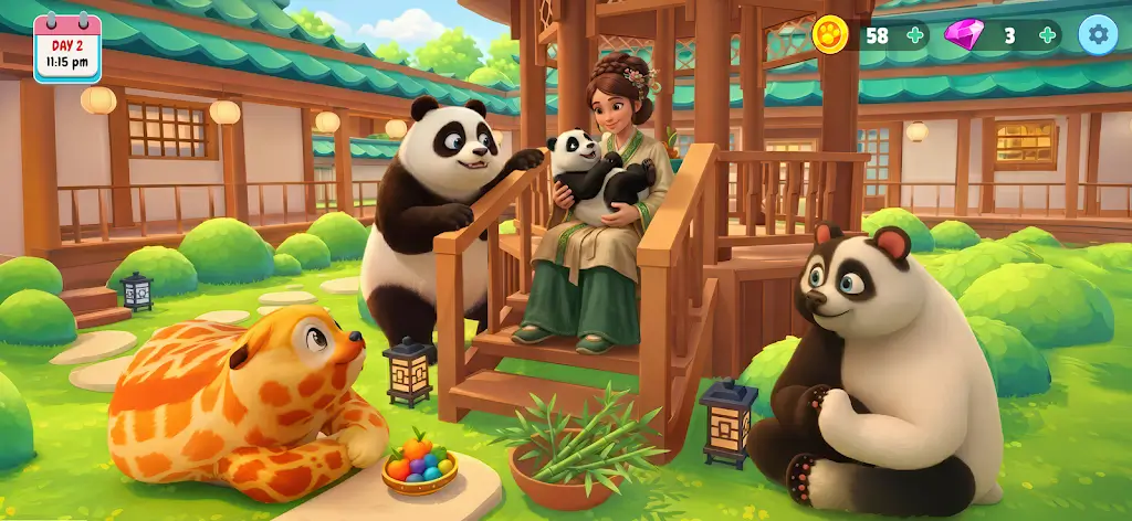 2. 丰富互动体验:从喂养熊猫,看它们享受美食的幸福表情,到错过饭时可爱撅嘴示意;再到在美容站为它们精心打理,增添装饰,乐趣满满。