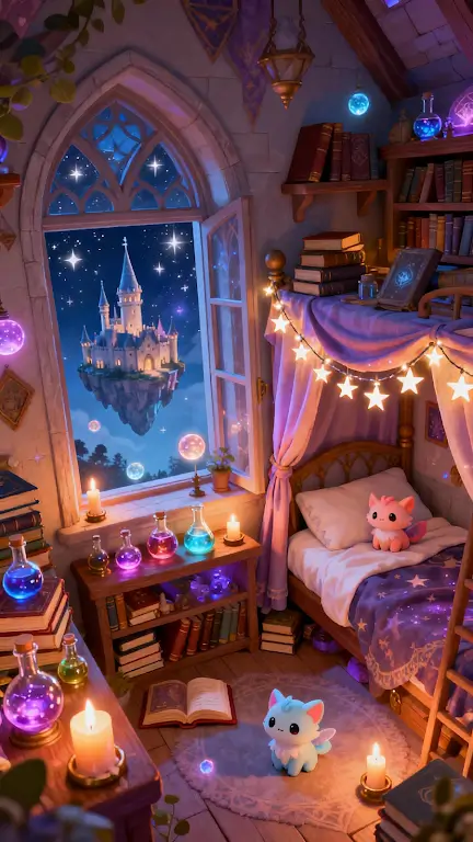 唯美画风与沉浸式氛围,视觉听觉盛宴:柔和梦幻的美术风格,画面细腻,色彩温暖,魔法建筑、物品极具艺术感。搭配轻松音乐和自然音效,合成与完成任务后沉浸其中。