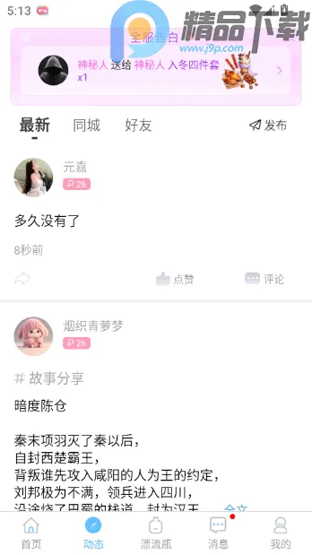 5、发出或者拾取一个漂流瓶