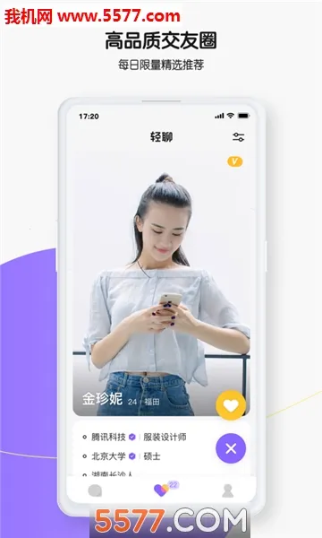 轻聊是一款实用的聊天交友软件,有企业智能客服版与社交版。社交版为用户提供多样聊天服务,身份真实,有多种特色功能,如智能筛选、同城好友、加入圈子等,还能视频聊天、速配交友,帮用户告别单身。
