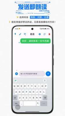 基础交流模式下,借鉴聊天界面,核心是存与快。像去超市结账,可提前准备好要说的话,到收银台单击历史气泡就能播放。还有输入即读、单击重播等多种操作。双向沟通巧妙借助输入法语音转文字能力,让交流更便捷。