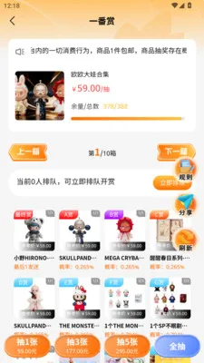拥有多种有趣玩法,能让用户边娱乐边抽赏,开启线上盲盒新体验,像一番赏、对对碰、爬楼猜角色、无限赏等玩法丰富多样。