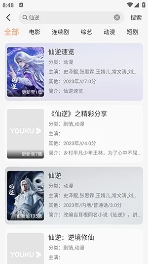 1. 影片类型丰富,涵盖电影、电视剧、综艺、动漫、短剧等,满足多样观影需求。
