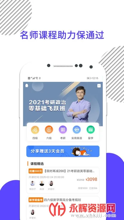 2、课程丰富:满足考研学习需求,可直接搜索课程进行线上学习。