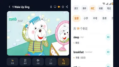 2. 沉浸式多媒体学习:支持音视频播放,原生发音磨耳朵,智能字幕中英对照助理解,随身听模式随时学。