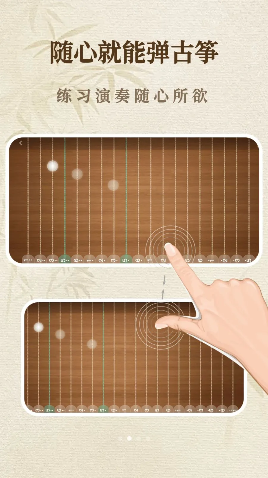 3. 随时随地畅享:无需专业基础,不用携带笨重乐器,打开手机就能随时随地享受弹古筝的乐趣,感受传统乐器的独特韵味。