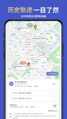 历史轨迹清晰呈现。支持随时或按时间段查看,家人日常路径一目了然,便于应对突发情况。