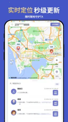 操作便捷,位置秒级更新。后台动态获取位置,能随时随地掌握家人所在,出行安全尽在掌握。