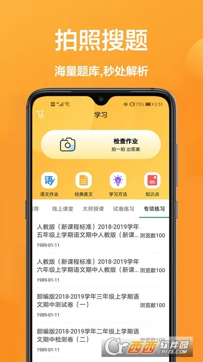 3. **题目海量**:题库覆盖全国小学、初中、高中各学科,包括数学、英语、语文等多门科目,各科教材练习册题目试卷以及寒暑假作业等难题都能解决,助力高效学习。