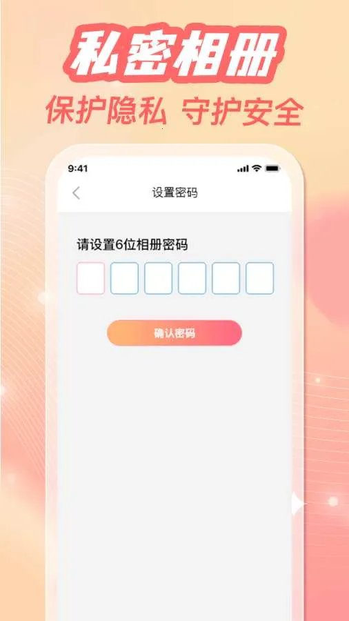 设有私密相册,提供密码保护功能,6位密码进入,有效守护照片隐私。