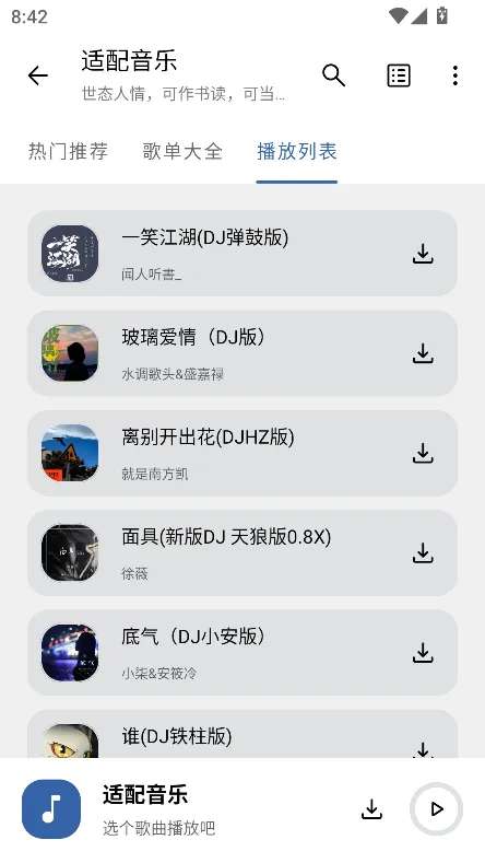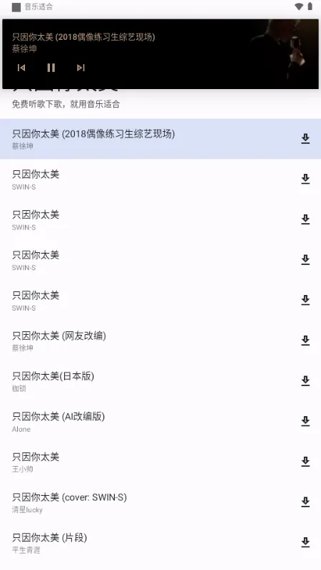 适配音乐 2025 官方正版是免费无广告的音乐播放器,汇集海量多元音乐资源,涵盖多种风格。有丰富榜单,支持多音质下载,能歌词适配、全网搜索,功能实用,带来优质听歌体验 。