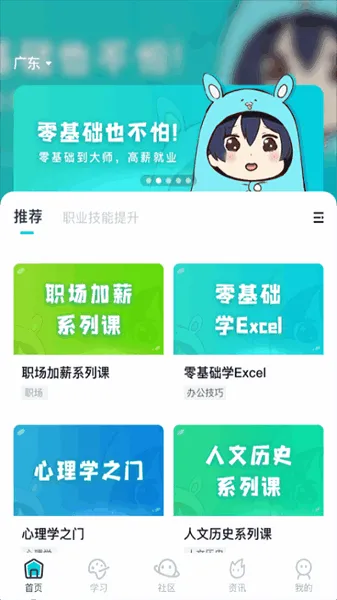 1、课程丰富:提供海量优质学习课程,涵盖原画师、平面设计师等多个领域,满足不同学习需求。