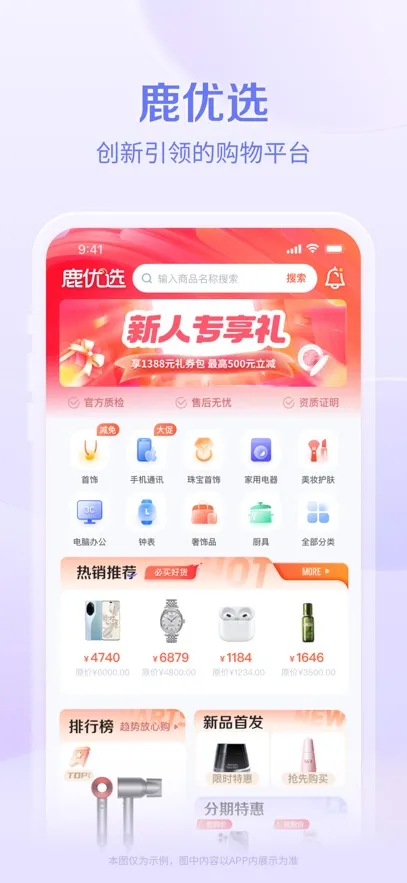 鹿优选是厦门沃橙数字技术有限公司开发的电商购物平台,商品海量且优质优惠,涵盖多品类。有丰富优惠活动,能领红包代金券。界面简洁、支付多样、售后完善,还能智能推荐,满足多样购物需求 。