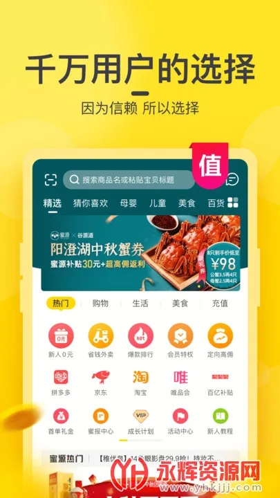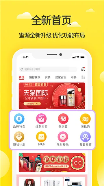 蜜源是广州蜜源新媒体科技有限公司推出的电商优惠助手,与多平台合作,整合海量隐藏优惠券。每日更新限时秒杀,支持9块9包邮,有新人首单0元购等福利。还能返利赚钱,覆盖生活多方面,满足购物省钱需求 。