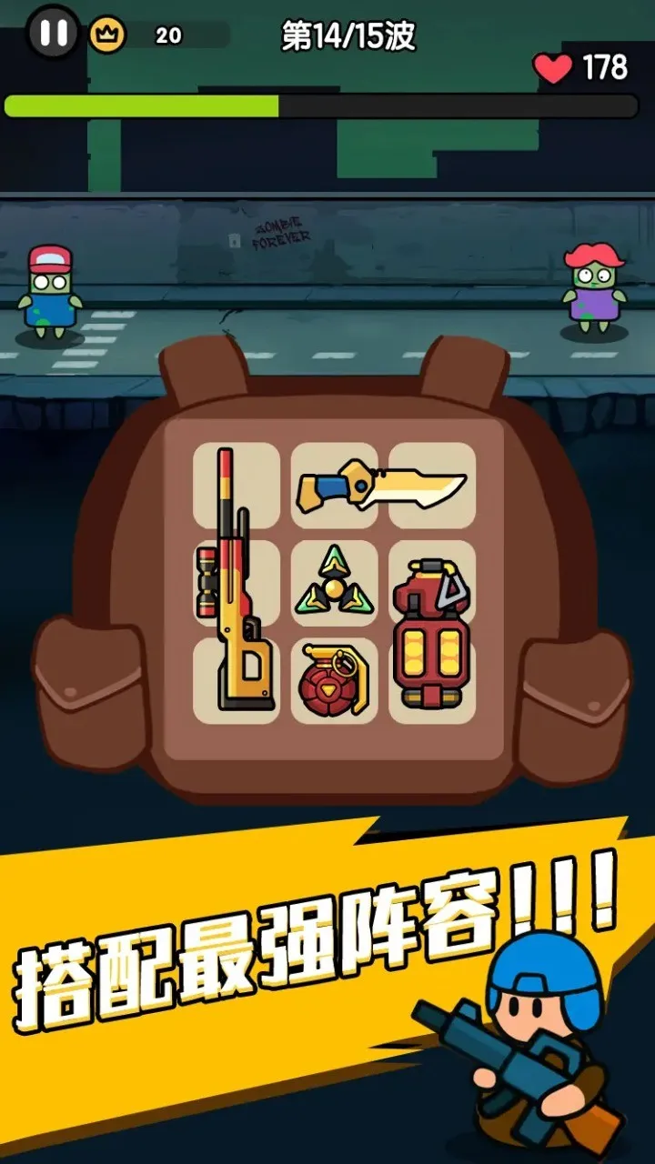 末世背包是融合末日与肉鸽元素的塔防生存游戏。玩家身处丧尸侵袭的末日世界,借助神奇背包收集合成武器,应对尸潮与BOSS,玩法丰富,有营地守卫等特色,还能解锁技能、搭配装备,开启独特生存之旅 。