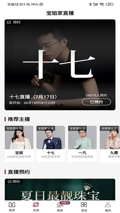 宝姐家是南京宝姐科技有限公司研发的珠宝拍卖平台。提供丰富拍卖活动信息与直播,可预约直播、参与限时抢购。有多种特色功能,能低价捡漏,严格监管交易,分类展示珠宝,满足爱好者需求 。