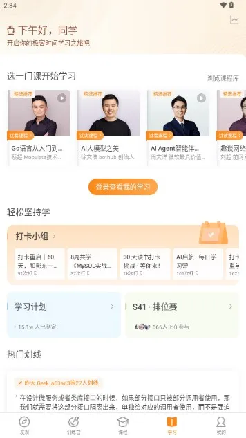 3、形式多样:内容包含精品专栏、极客新闻、热点专题、直播、视频和音频等多种形式的知识服务,满足不同学习习惯。