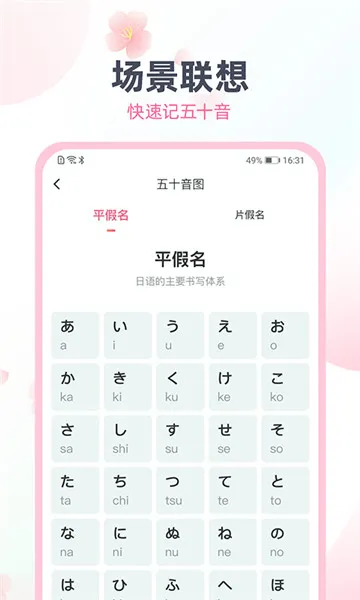 3、科学学习方式:采用场景联想的科学学习法,让五十音轻松入门、快速掌握,帮助用户以高效且有趣的方式学习知识。