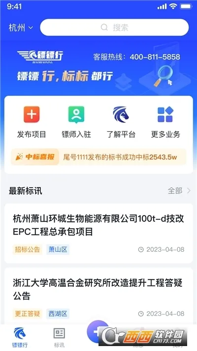 镖镖行由杭州镖行天下建筑科技有限公司开发,能提供一站式标书制作服务,个人和企业用户皆适用。其有专业镖师团队,经严格培训和标准化流程,可高质量制作标书,满足多样需求。集成智能和在线客服功能,售前咨询能及时获帮助解答。还集成IM功能,方便客户与镖师沟通,确保标书质量。此外,整合全网招标资讯且及时更新,能轻松查询数据。软件不断迭代更新,优化流程,规范专业,致力于为用户提供优质服务与体验 。