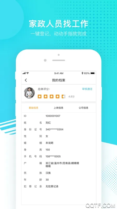 1、人员可靠有保障:由温州人社局牵头创办,配合多部门定期审查人员信息,建立诚信档案,只有满足就职条件的家政人员才能进入平台,确保人员优质可靠。