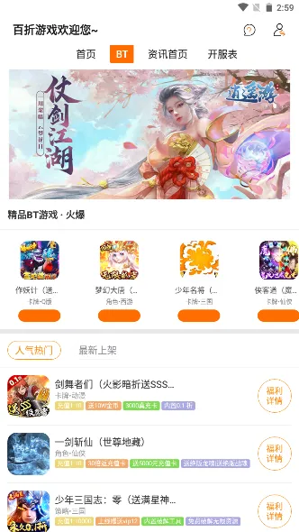 1 海量福利:提供各种各样的游戏福利,用户能尽情畅享,享受省钱玩游戏的乐趣。