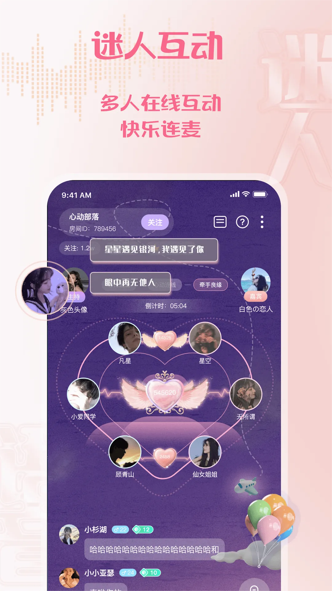 迷人语音2025官方正版是一款语音交友应用。它以伯虎点秋香为主题,用户能在此体验浪漫爱情故事。提供多种社交模式,可参加交友派对畅聊,也能参与蒙面歌王活动展现才华。能多人在线互动连麦,还可领养萌宠遛厅。其支持同城社交,通过多种方式与异性互动。软件特色丰富,有暖心电台可倾听分享。它适合想交友或找爱情的人,能满足不同用户在社交娱乐方面的需求,是款不错的语音社交软件 。