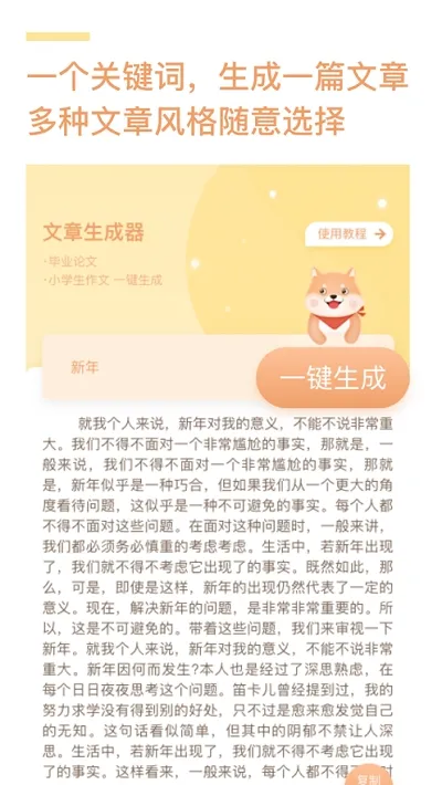2、分享便捷:所有生成文章支持手机复制粘贴,直接复制就能随时分享到其他平台。