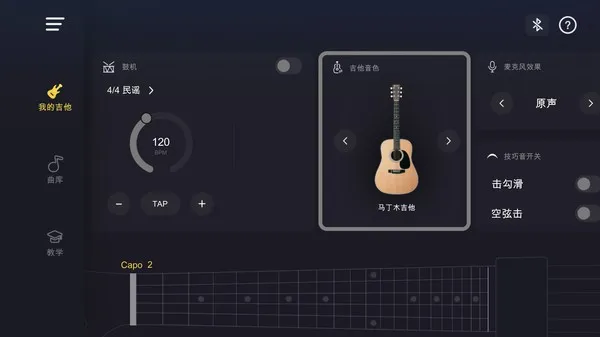 2、个性化设置:吉他老手可对吉他进行个性化设置,让其更符合自身需求和喜好;初学者能随心配置和弦指法,弹奏更流畅。